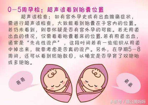 如果医生确定你怀孕了,那么等到五到六周的时候一定要去做B超看胚胎数,通过超声波检查大致能看到胚囊在子宫内的位置,另外还可以看到胚胎数目已确定我们的准妈妈是否怀了双胞胎宝宝,六到八周的时候只需要听胎心啦。在超声波的扫描下可以检查到胎儿心跳。