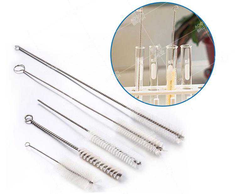 试管刷根据试管的深浅宽窄定制,适配的试管刷应能触到试管底部、刷丝与试管内壁紧密贴合但在转动清洗过程中不会刮花试管管壁,可完成360度旋转清洗工作。在骨架和刷丝之间的拉力可不能忽视,拉力不足导致刷丝脱落的试管刷是不符合使用要求的。