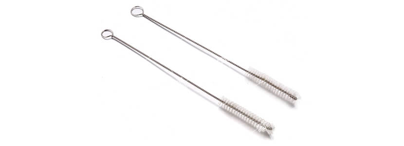 试管刷结构简单,由骨架和刷丝两种材料扭制生成,刷丝均匀分布在两根不锈钢线中。骨架以耐腐蚀不生锈的304不锈钢为主,刷丝则会根据试管内的环境选择尼龙丝、猪鬃毛丝、纤维毛丝、磨料丝、铜丝等。
